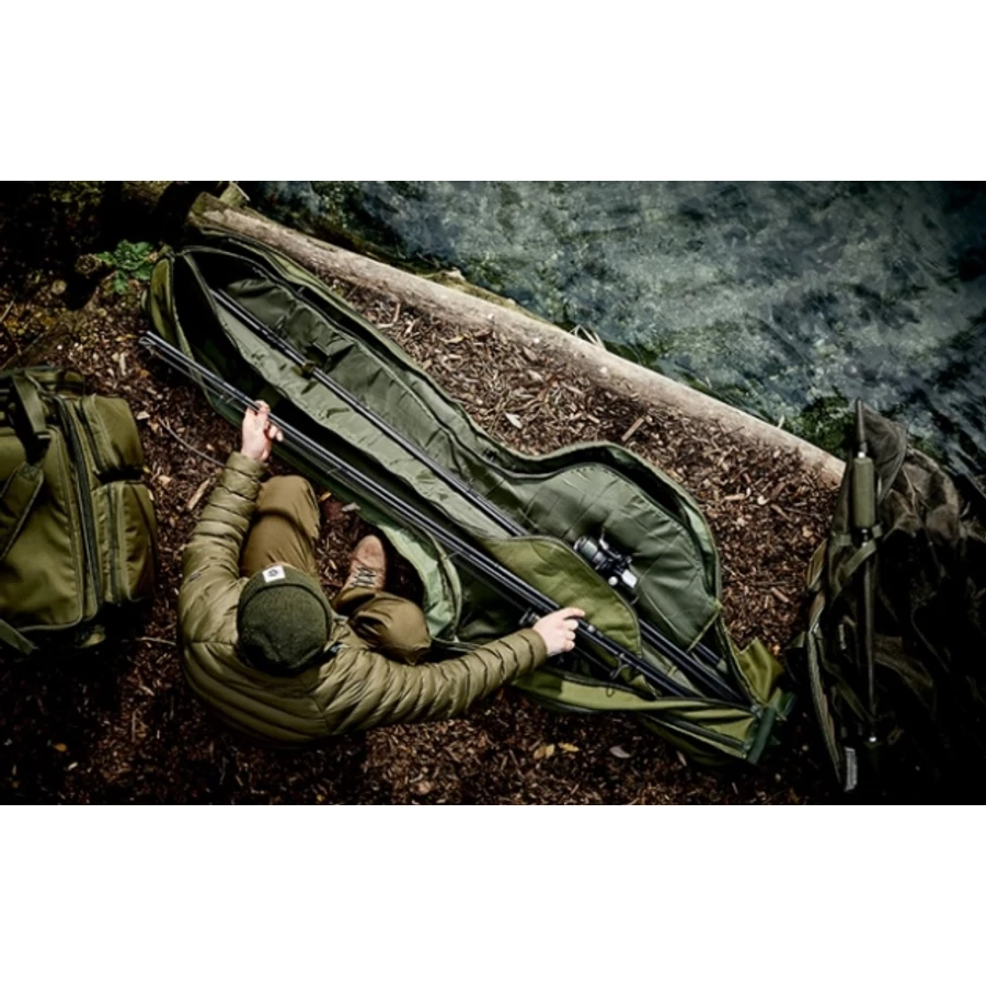 A Trakker Products nyári újdonsága az NXG 3 Rod Padded Sleeve 13”, amely a már jól ismert és rendkívül népszerű, kiváló minőségű bottartó táska továbbfejlesztett, megújult változata. A bottartó táska, 3db orsóval felszerelt, 390 cm-es kétrészes horgászbot tárolására-szállítására terveztek. A vastag és bélelt, párnázott belső részének köszönhetően az értékes és sérülékeny felszerelés minden körülmény között biztonságban tudható. Méretéből adódóan még a legnagyobb keverőgyűrűkkel és a nagyméretű távdobó orsókkal felszerelt botok is tökéletesen elférnek a belsejében. Ötletes kialakításánál fogva egy belső térelválasztó panellel, valamint tépőzáras szalagokkal is ellátták, így a botoknak garantált és tökéletes, elmozdulás elleni védelmet biztosít. Az oldalsó részén egy teljes hosszban végigfutó cipzár található, így a bot könnyen és gyorsan, szinte pillanatok alatt kivehető a botzsákból. A botzsák külső részen elhelyezésre került egy kis ólomtartó zseb, illetve a merítőháló, mérlegelő zsák (Retention Sling), leszúrók, stb. elhelyezésére szolgáló nagyméretű, erős műanyagklipsz-el és zipzárral nyitható-zárható tároló rész is. A kimagasló teherbírású, 600D polyester anyagból készült táska pontos varrási illesztésekkel, nagyméretű cipzárral, ergonomikus kialakítású, kényelmes neoprén fogantyúval, állítható vállpánttal, hímzett emblémával, ízléses világoszöld színben, és a már jól ismert NXG minőségben kerül forgalomba. Az erős és strapabíró Nyplax anyagból készült alsó része még jobban kiemeli magas használati értékét.