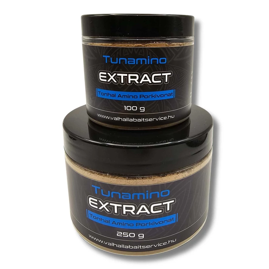 A Tunamino Extract egy nyers tonhalhúsból készült porkivonat, mely nagyon magas aminosav profillal és nagyon erős halas ízzel és illattal rendelkezik. Kiváló természetes attraktorként használható minden halas jellegű csalihoz! Vízoldékonysága kiváló, ezért bármilyen vízhőmérsékletnél bátran használható. Vízbeéréskor azonnal dolgozni kezd és elősegíti más adalékanyagok kiáramlását a csaliból. Egy igen új adalékanyagnak számít a pontyhorgászatban de kiemelkedő hatásfoka miatt máris bizalmat szavazott neki sok csaligyártó cég.